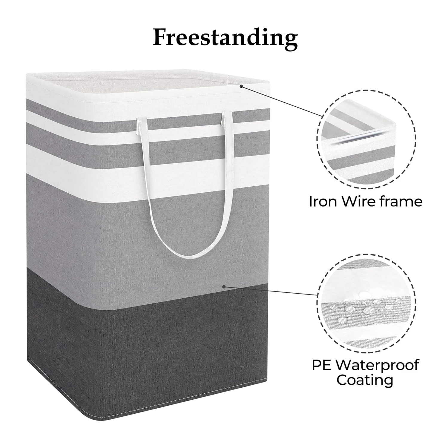 Freestanding Design: Simply stretch the dirty clothes hamper out and it will stand upright on its own for a very long time. No installation is required at all.