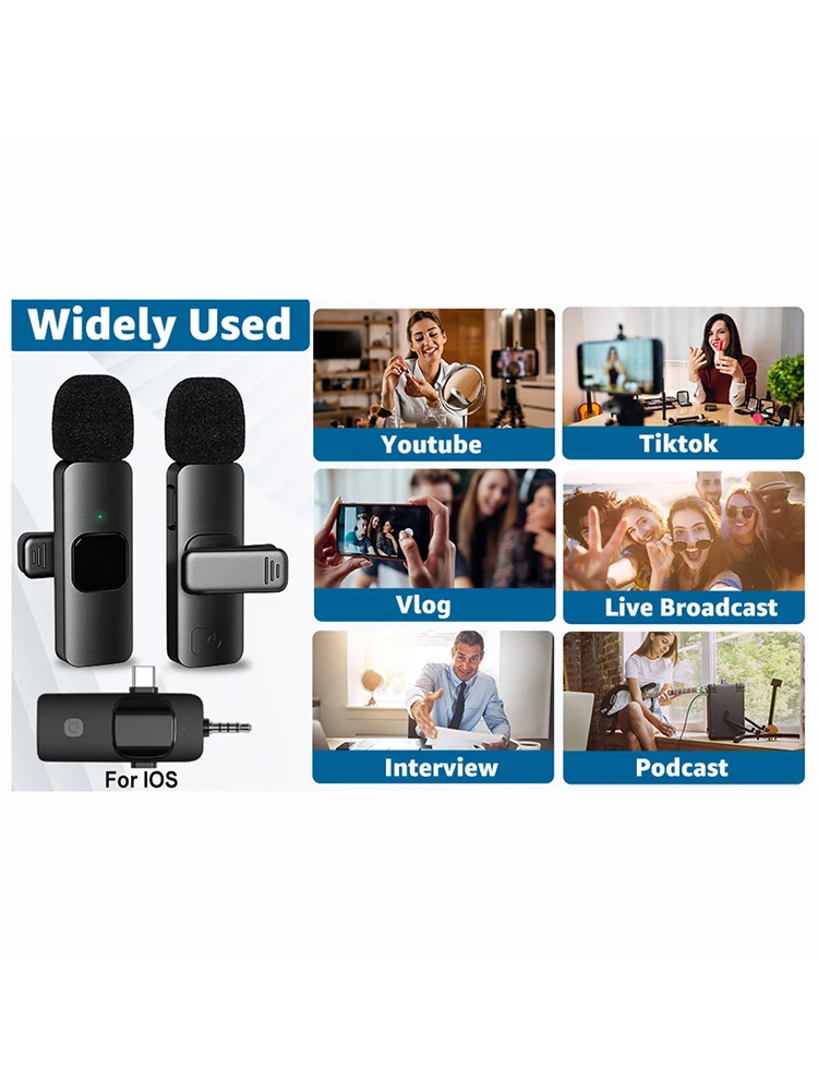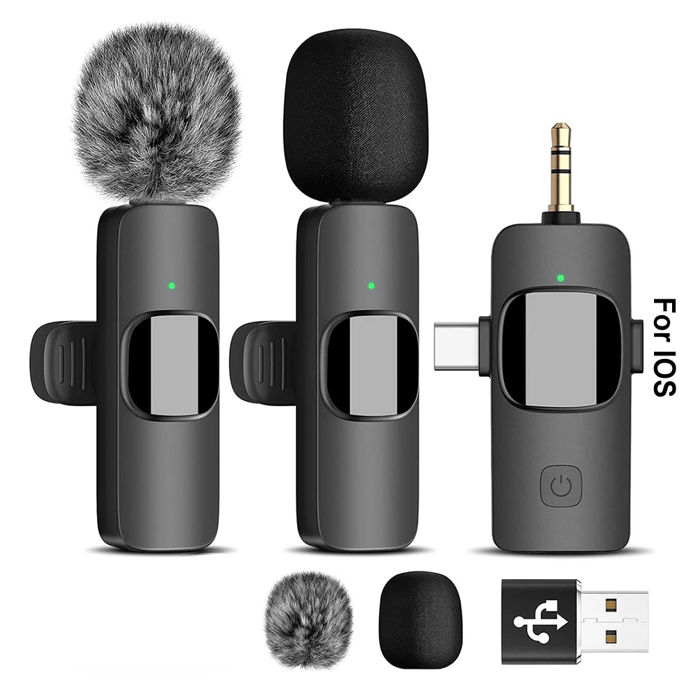 Note: 2.4G Wireless Lavalier Microphone Audio Video Recording Mini Lapel Mic Noise Reduction 3 in 1 Mini Lavalier Microphone Plug and Play Compatible with iPhone Huawei Xiaomi Samsung for Live Broadcast Gaming Feature: 1. Versatile Wireless Microphone: This wireless lavalier microphone offers professional-grade recording output, for live streaming, video shooting, interviews, and educational videos. It's plug-and-play with no need for an app, making it incredibly user-friendly. 2. Comprehensive Kit: The audio video recording mini lapel mic comes with a transmitter (TX) and receiver (RX). This two-transmitter, one-receiver setup includes a pair of windshields and a USB adapter for versatile recording needs. 3. Multi-Device Compatibility: The mini lavalier microphone is designed to meet various recording needs, for Android phones, compatible with iPhones, computers, tablets, cameras, and 3.5mm jack older Android phones. It can even be used for speaker amplification (note: adjust volume and distance appropriately to avoid feedback). 4. Easy to Use: To use the portable lavalier mic, simply short press the power button on the transmitter for 1 second until the red and green lights flash. Then, short press the power button on the receiver for 1 second until the green light flashes and enters pairing mode. Once paired, both the transmitter and receiver lights will stay green, indicating the microphone is ready for recording. 5. Wireless Freedom: Enjoy the freedom of movement with our lapel microphone. With a recording range of up to 20 meters in a straight line and about 7 meters with obstacles, it meets your recording needs in various environments without the hassle of cables. Specification: Origin: Mainland China Style: Lavalier Microphone Use: Home Studio Transducer: Cable Adapter Set Type: Multi-Microphone Kits Hign-concerned Chemical: None Product name: One-to-two lavalier microphones Color: black Frequency range: 2.4G Working current of the transmitter: 11-12mA Charging interface: TYPE-C Working current of the receiver: 20-21MA Battery capacity: 60MAH Battery full voltage: 4.1-4.25V Frequency response: 20-20KHZ Working temperature: -10 to 45 degrees Charging input voltage: 4.8V-5.4V Working time: about 4 hours Power-on current: 10-11MA Transmission delay: 30MS Sensitivity (microphone): -42DB Antenna: ceramic antenna Microphone head: noise reduction microphone Transmission distance: 20 meters in a straight line, about 7 meters in obstacle distance Power-off current: 2-3uA Product weight: 29g Gross weight: 88g Receiver size: 75*42*12mm Transmitter size: 58*15*10mm Packing size: 114*104.5*34.5mm
