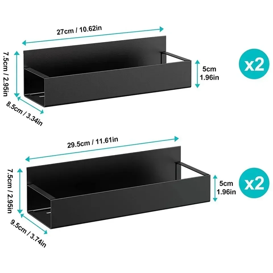 1. The magnetic seasoning rack is made of high-quality steel structure. The surface is treated with a black matte finish. It is waterproof and rust proof, very suitable for your kitchen.