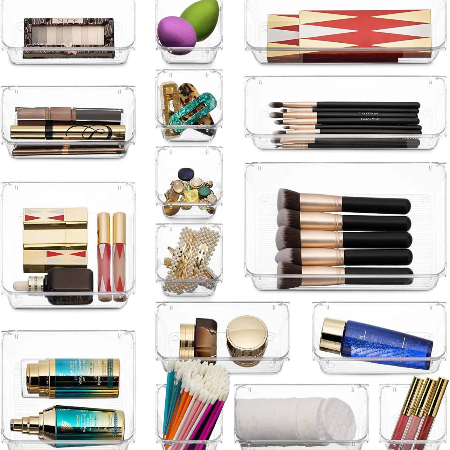 25 PCS Clear Plastic Drawer Organizers Set,4-Size Versatile Bathroom and Vanity Drawer Organizer Trays Storage Bins