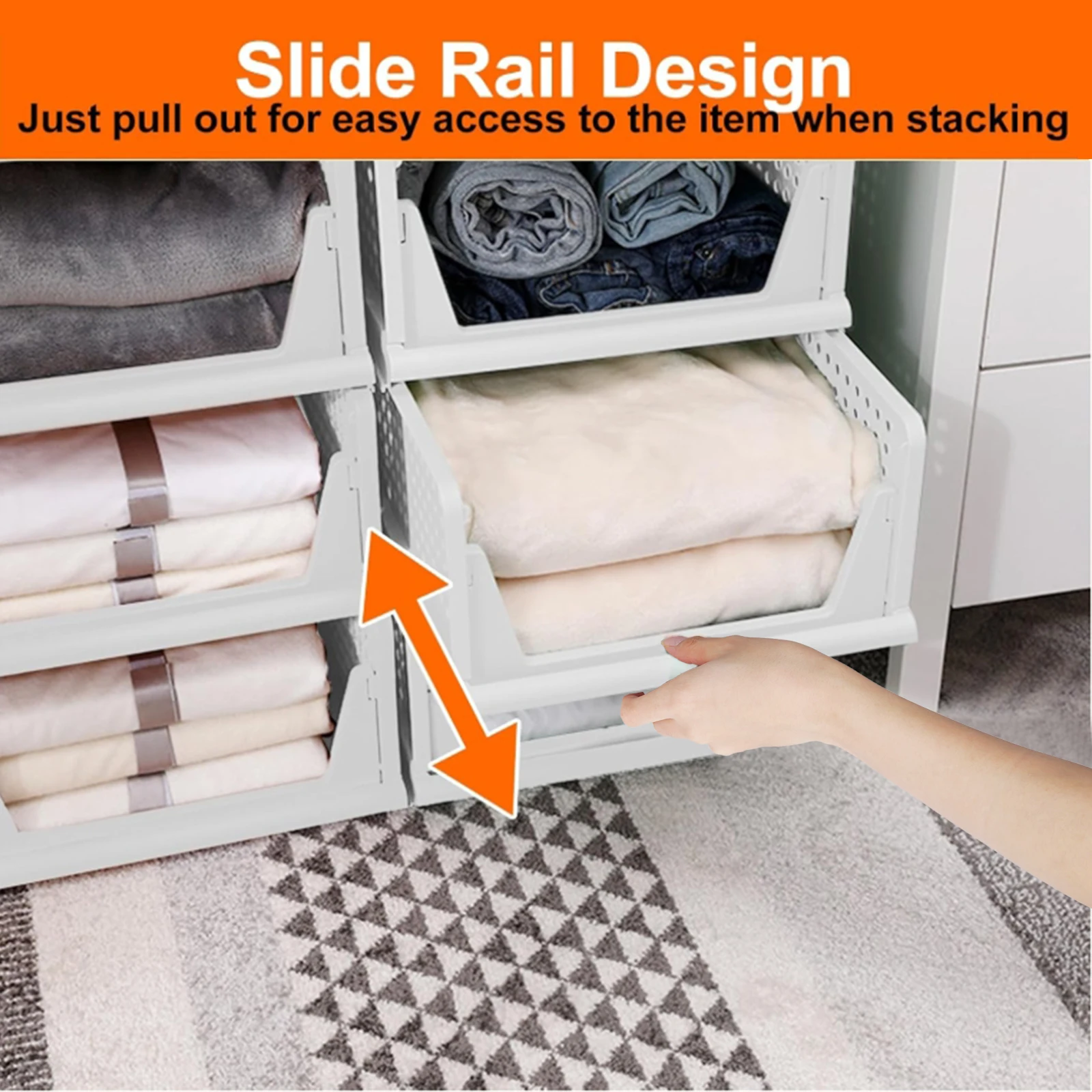 Set of 4 Stackable Bins: Each measures 43×33.5×18.5 cm (L×W×H); arrange freely to fit your space.