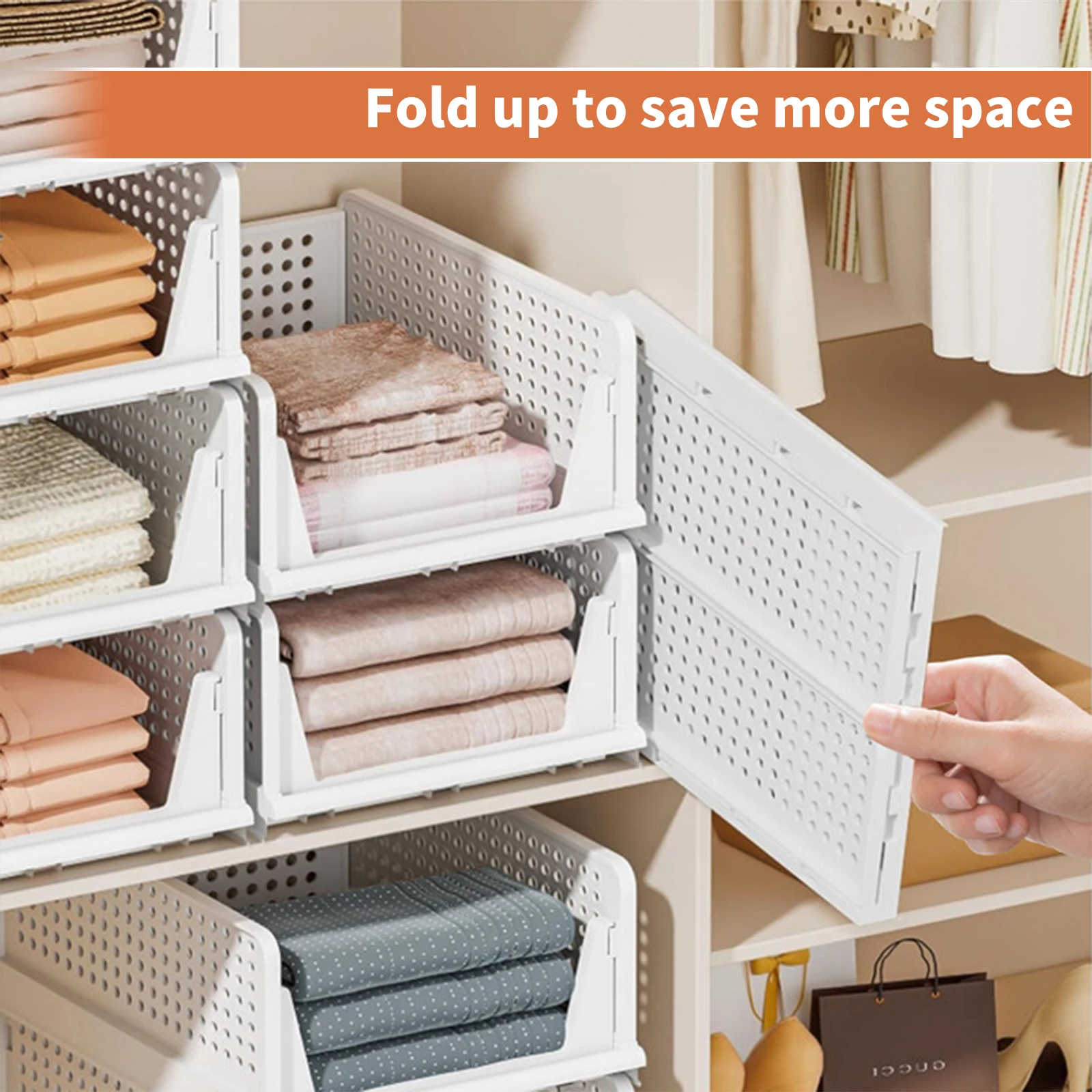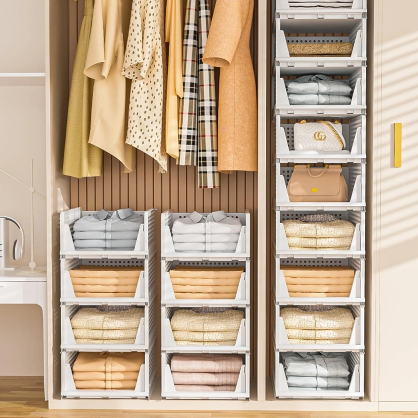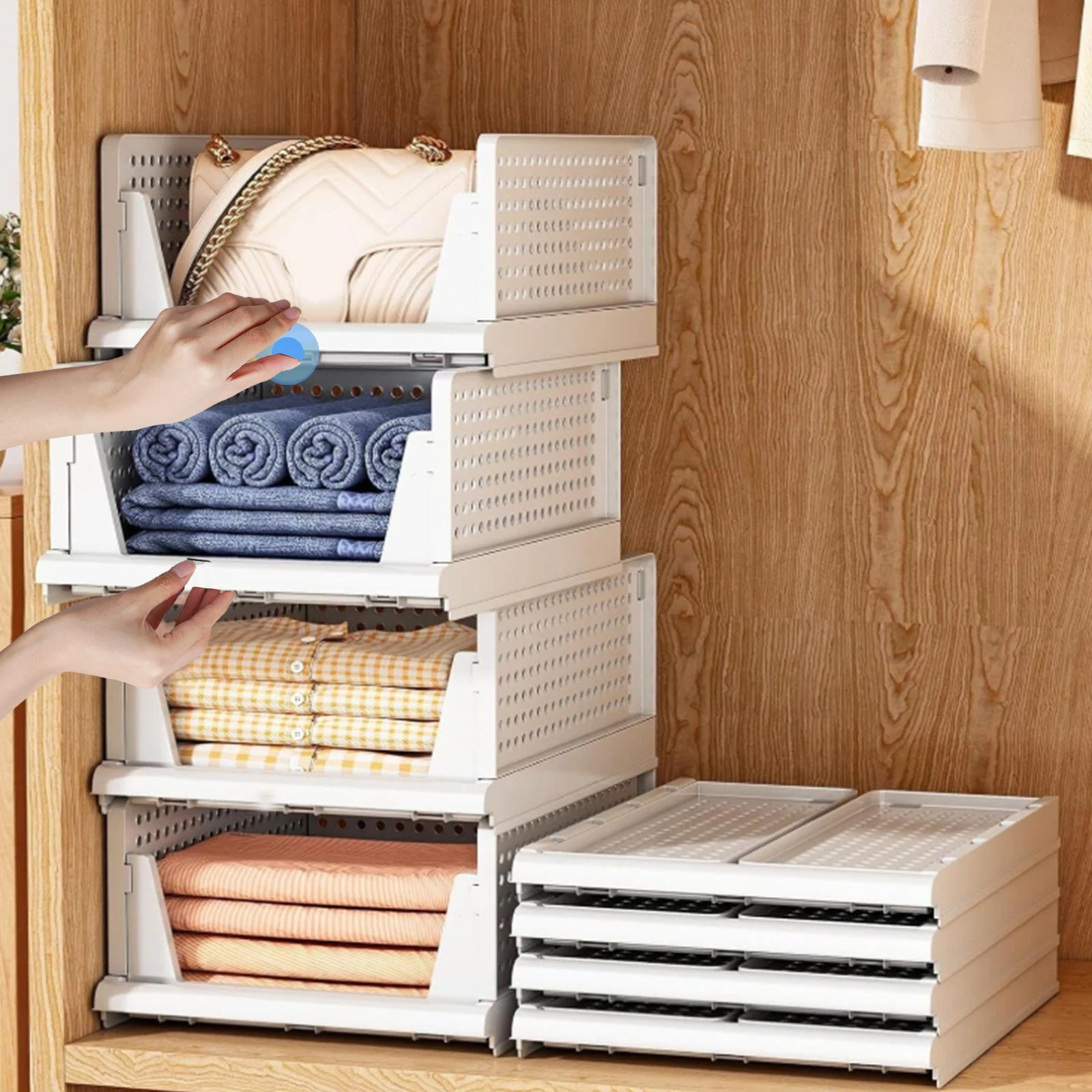 4pcs Foldable Wardrobe Organizer Cabinet Storage Box Waterproof PP Material Stackable Boxes Bedroom Closet Organization Storage