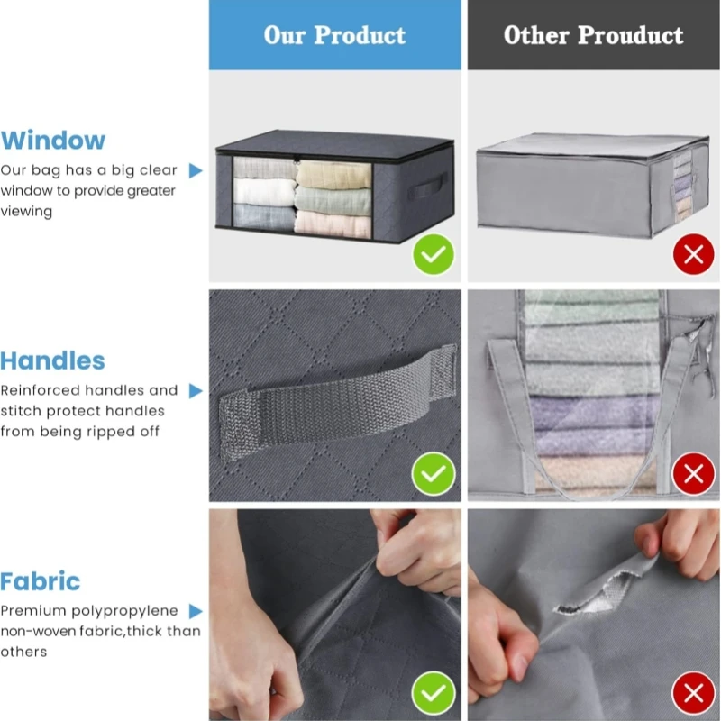Premium Fabric: 6 pack storage containers for organizing clothing with 60L capacity; clothes storage is made of high-quality odorless breathable non-woven fabric to protect your clothes from dust and moisture; Each blanket storage bag measures 23.6 x 15.7 x 13.7 in;