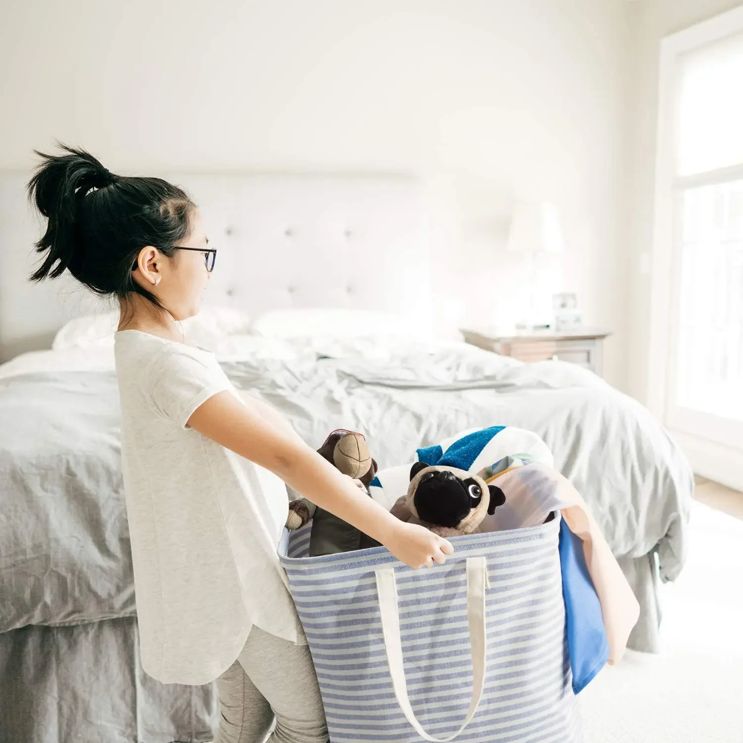 Ultra Spacious: Dimensions of laundry basket are 15.7 x 11.8 x 23.6 inch with capacity 72L which easily contains 1.5 loads laundry. It is perfect for university, dormitory and family use.