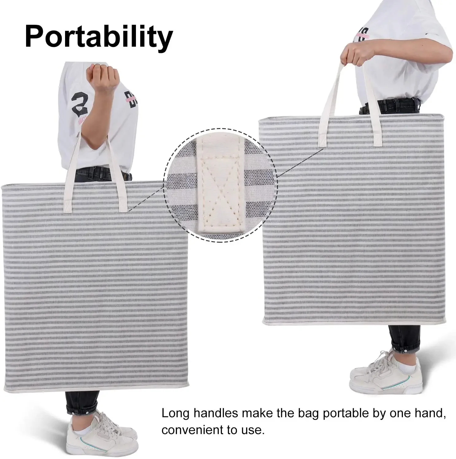 Extended Handle: Most clothes hampers for laundry need 2 hands to carry it, while ours is not, the length of handles are long enough to carry with single hand. Sometimes when you already held somthing, you still can move the hamper with the other single hand. You can also carry 2 hampers in one time when heading to laundromat.