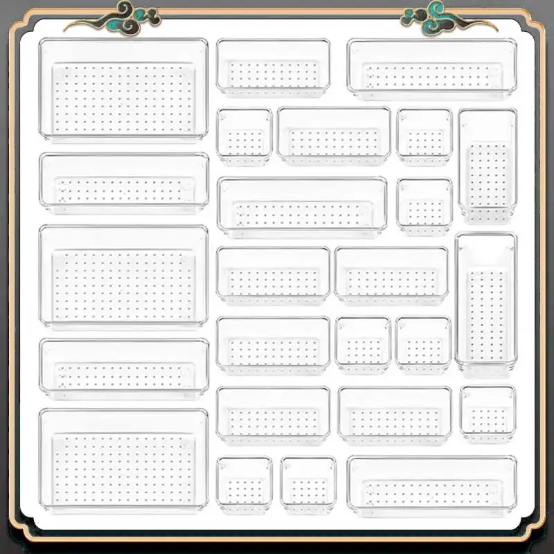 ASMA-25Pcs Clear Drawer Organizers Storage Box Set Smooth Edge Burr Free Transparent Design Cosmetics Containers Versatile