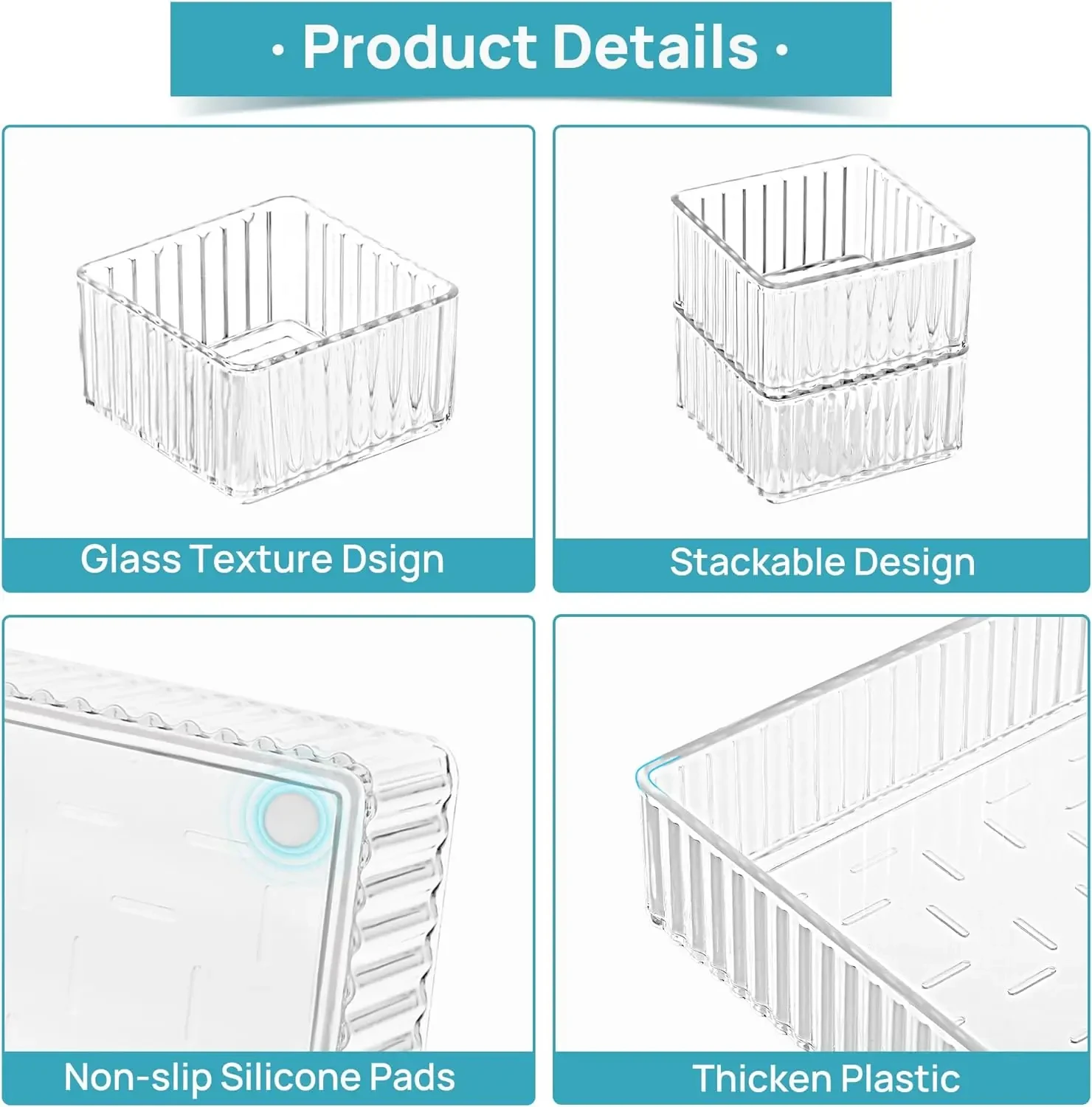 Clear Drawer Organizers Bins, Stackable Makeup and Vanity Drawer Organizer Trays, Acrylic Bathroom Drawer Storage Containers
