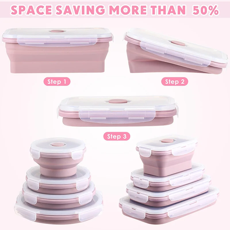 Collapsible Food Storage Containers Foldable Silicone Lunch Containers with Lids, Rectangle Collapsible Bowls Round Food Bowls