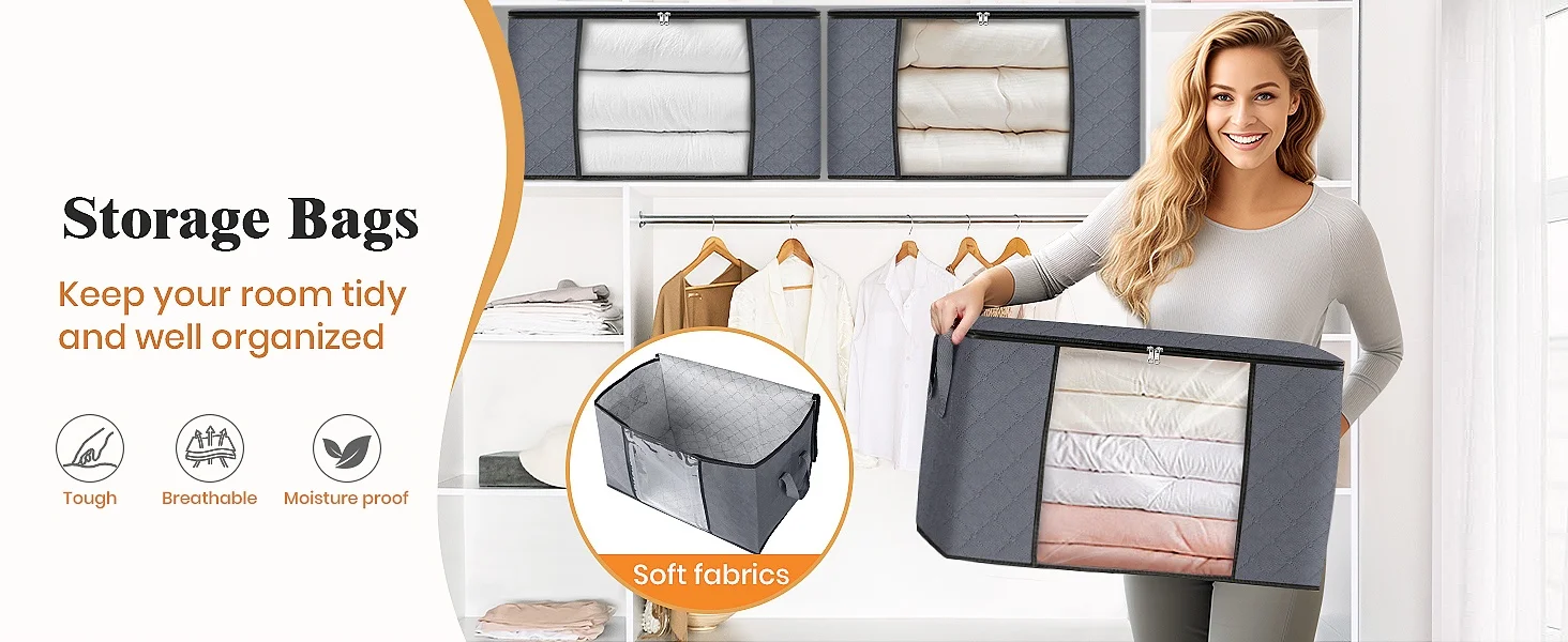 The foldable thick fabric blanket storage bag can be freely purchased, with one or multiple options for easy use.