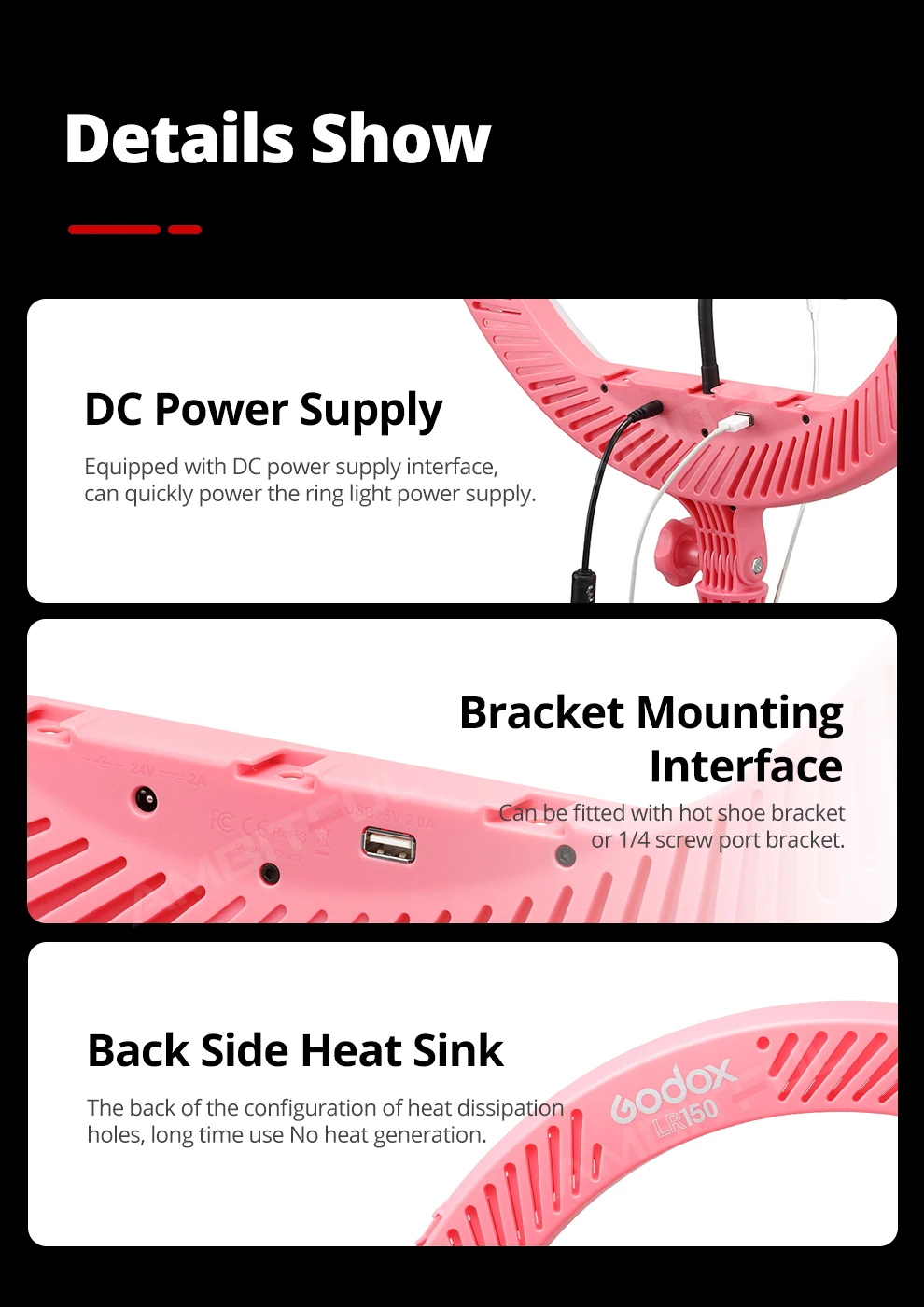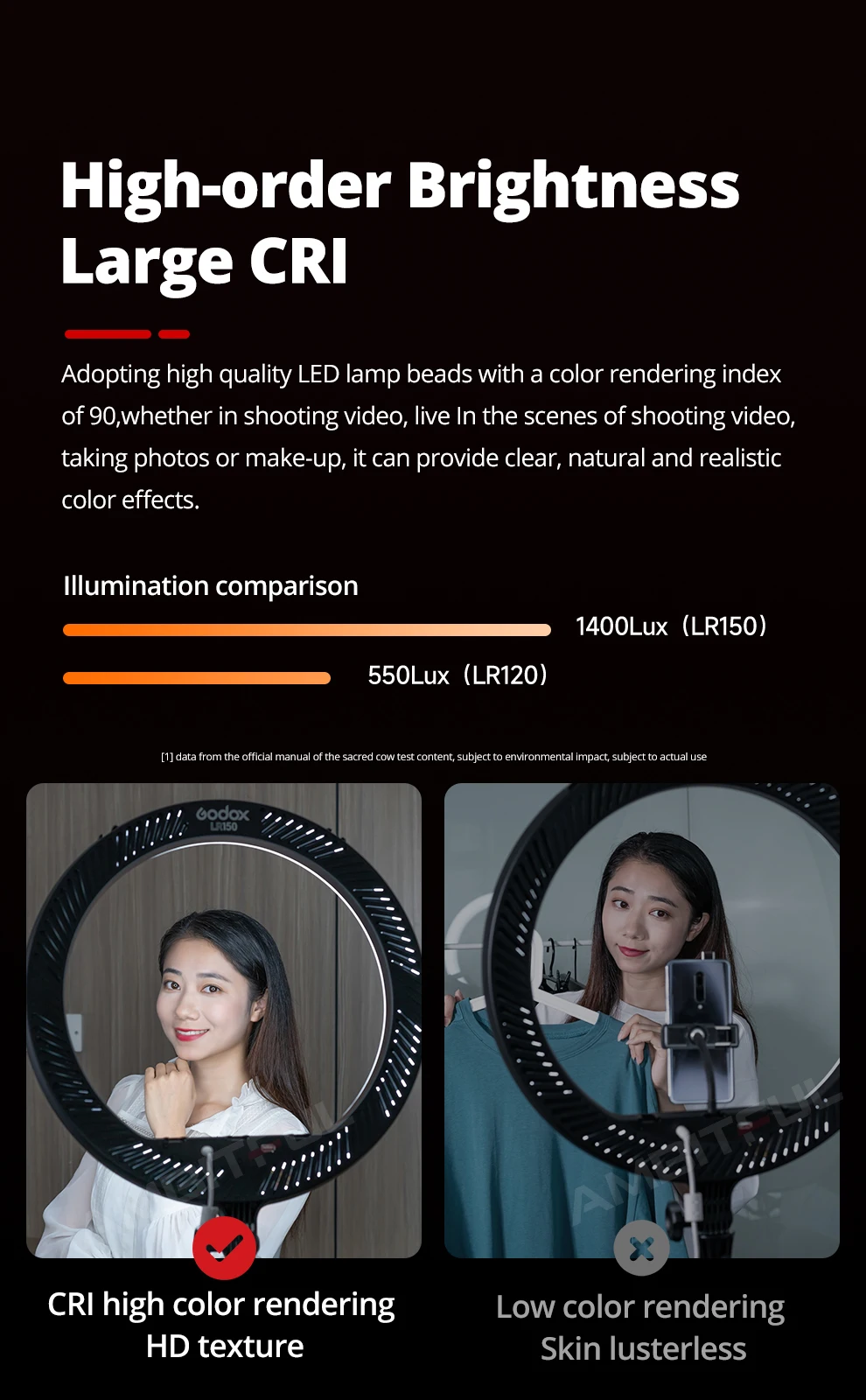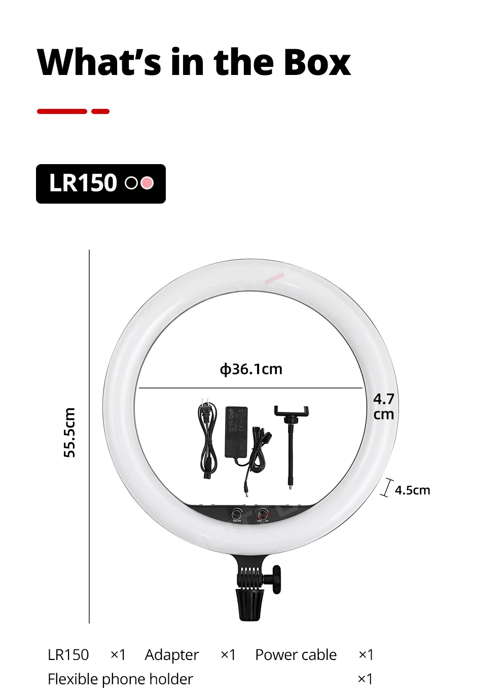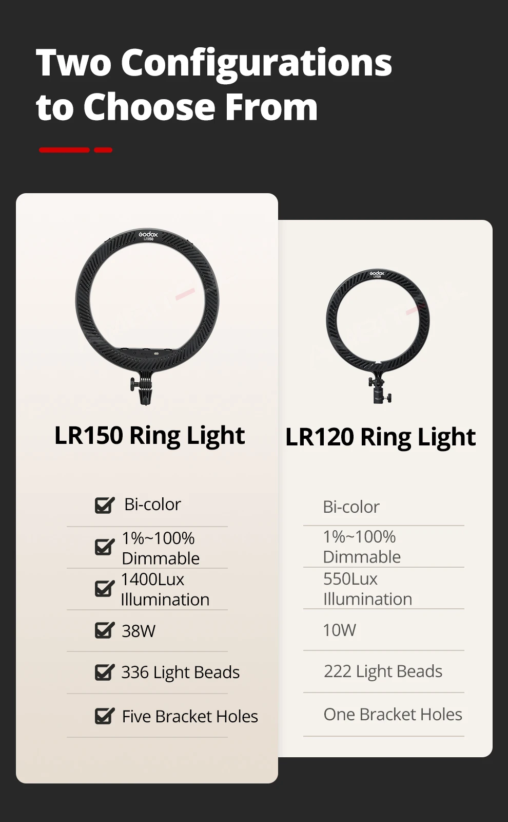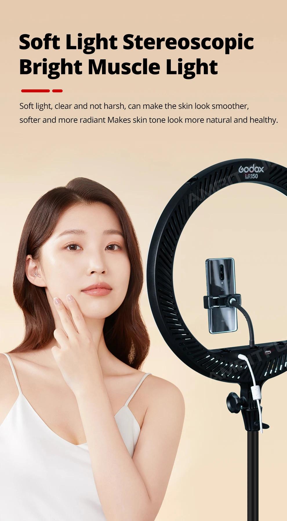Godox LR120 LR150 LED Ring Light Annular Lamp Bi-color 3000K-6000K Ring Lamps for Video YouTube Ringlight Makeup Light