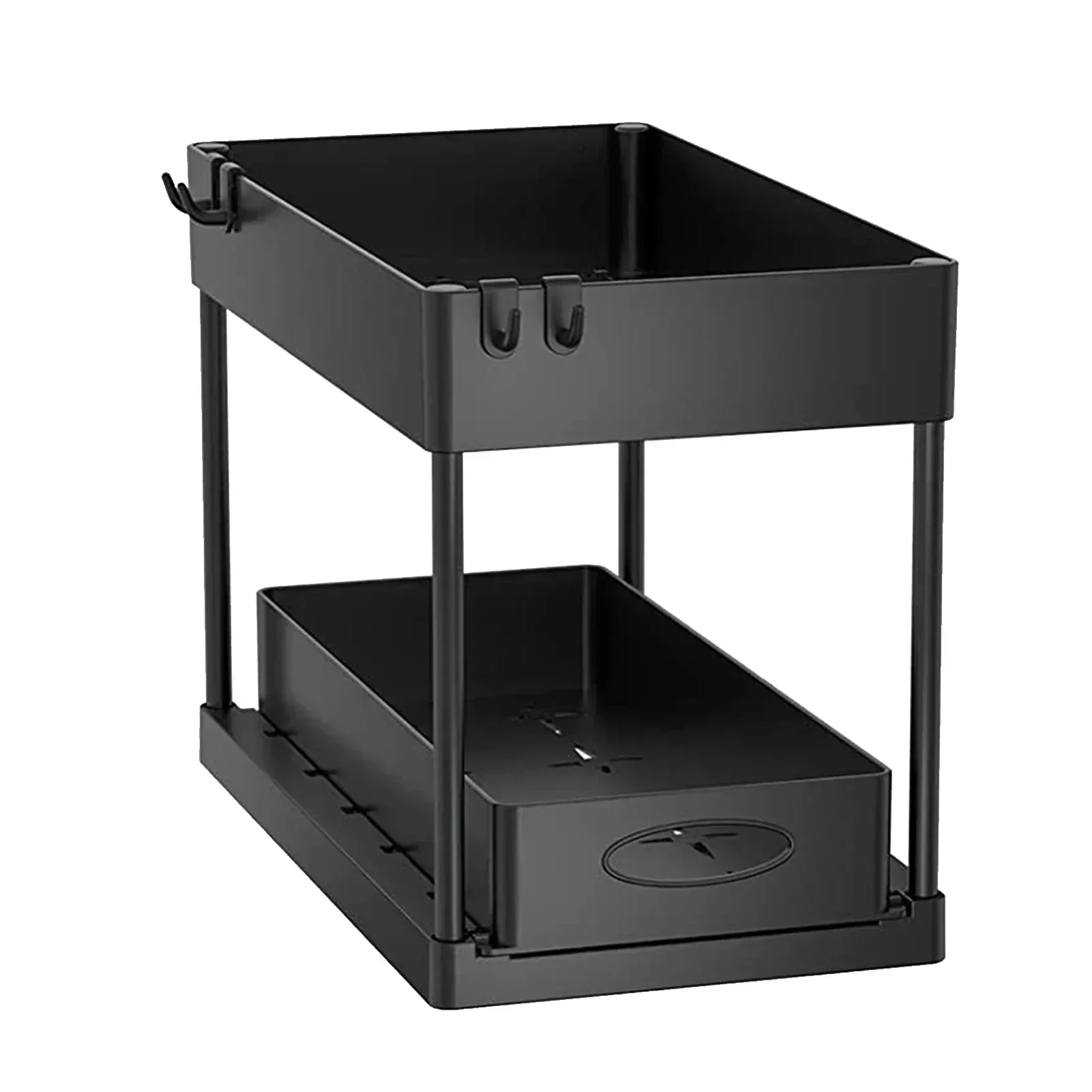 Home Decor 2 Tier Under Sink Organizer Sliding Basket with Hooks Hanging Cup for Kitchen Bathroom Cabinet Storage Rack