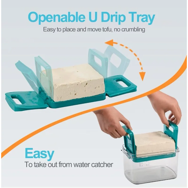 2. Convenient Drip Tray: The U shaped drip tray makes this tofu press easy to place and move tofu without breaking, while the bottom prevents squeezed tofu from soaking in water.