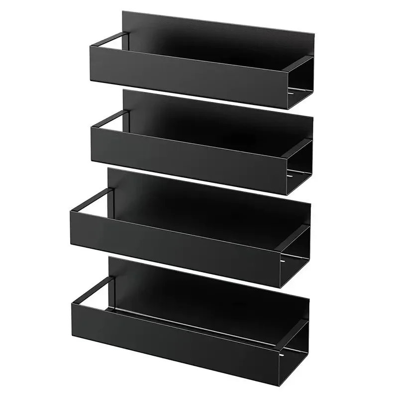 The magnetic seasoning rack is made of high-quality steel structure. The surface is treated with a black matte finish. It is waterproof and rust proof, very suitable for your kitchen.