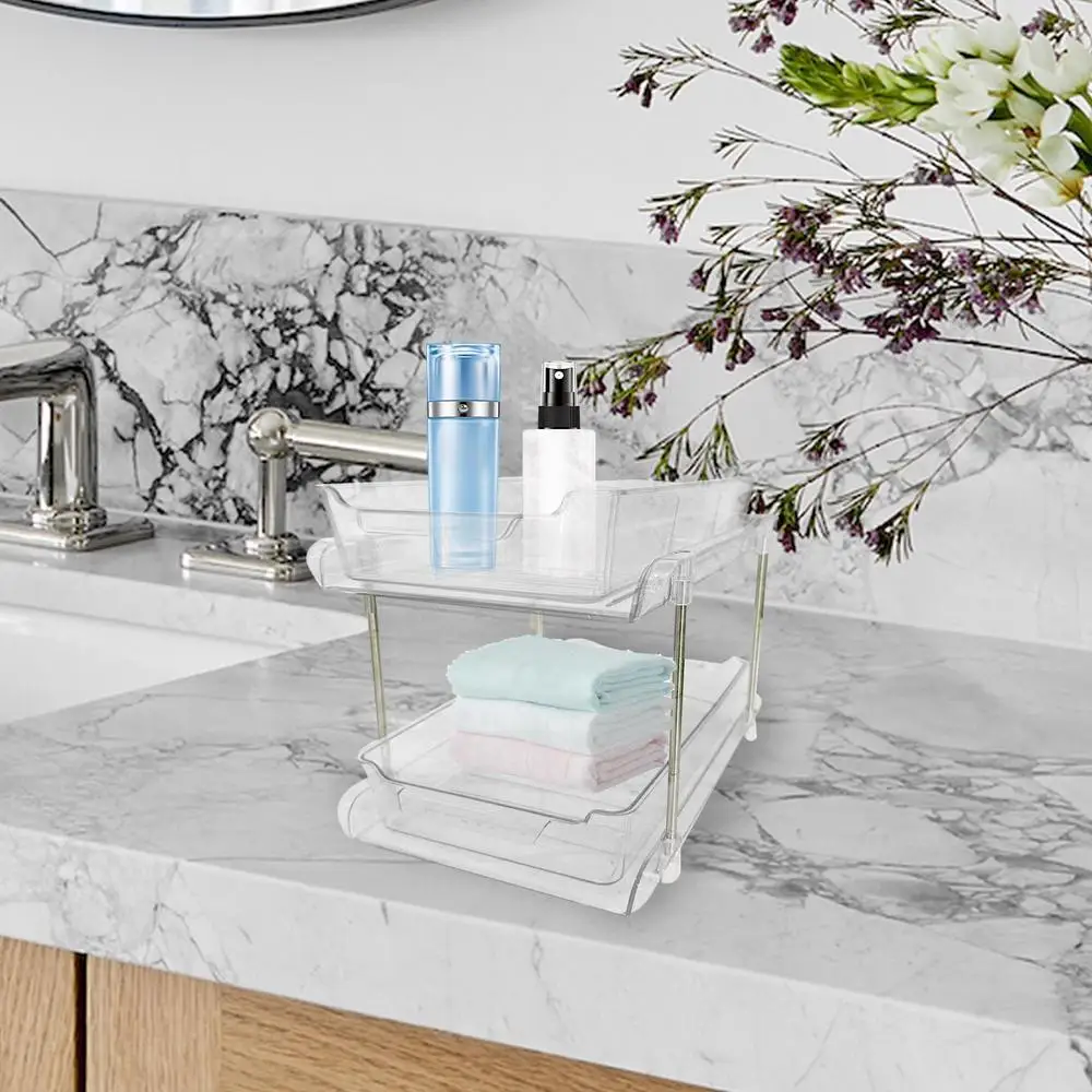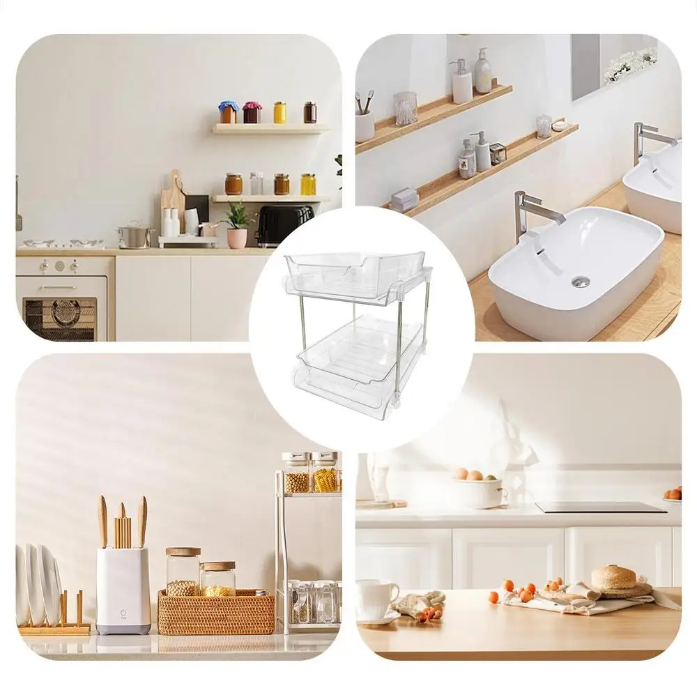 1.Space-Saving: Ingeniously designed with double-layer adjustable shelves and pull-out drawers, this organizer seamlessly transforms every inch of your under-sink area into a neatly arranged haven.
