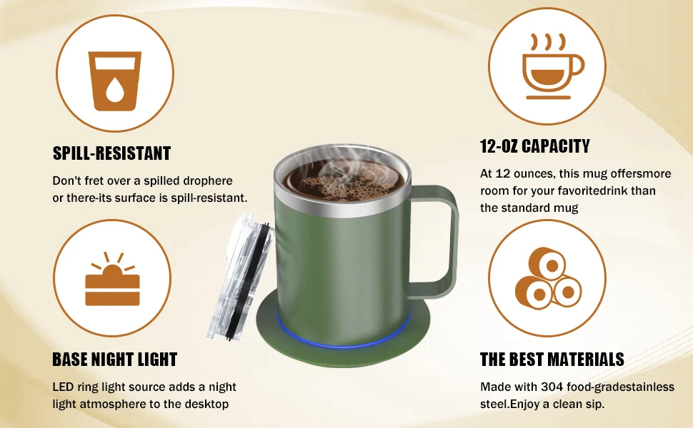 【Thermal Insulation and Safe Protection】: Thanks to the wireless inner core induction heats up, the cup body and heating base do not get hot. The temperature control chip has an overheating protection, safe and comfortable to use.